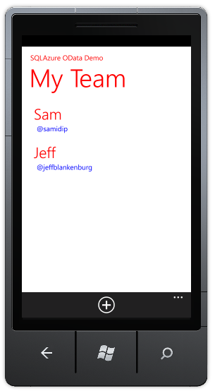 Just a few points to mention. On hitting the “+” App icon, I have a little UI pop-up that accepts the new Team members Name & TwitterHandle. The code sample above hard-codes the user; but you get the point that the UI needs to fire the “InsertDataThruService” method. Once we have the “WCFContext”, you can see how easy it gets to manipulate the data through any CRUD operations. Another important point to keep in mind is that the “BeginSaveChanges” call is asynchronous, this being Silverlight. So, the “SaveChangesCB” callback delegate does not fire on the same UI thread. This is important to keep in mind if you start wondering why the message pop-up or the refresh of the Team member list in our case, does not fire.