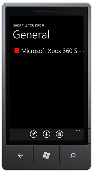 That’s it .. we have enough configuration to give this a spin. With my updated app deployed, if I now Bing for XBox, which is a Product Extension I have subscribed for, my app gets listed in the Apps pivot in the Quick Cards. How nice is that?<?xml version="1.0" encoding="utf-8" ?> <ExtrasInfo> <!-- Application title--> <AppTitle> <default>ShopTillYouDrop</default> </AppTitle> <!-- Search-related captions --> <Consumer ConsumerID="{5B04B775-356B-4AA0-AAF8-6491FFEA5661}"> <ExtensionInfo> <Extensions> <!-- Specific Caption for each Extension or Group of Extensions --> <ExtensionName>Bing_Products_Arts_and_Crafts</ExtensionName> ... ... </Extensions> <CaptionString> <default>Add to Shopping List!</default> </CaptionString> </ExtensionInfo> </Consumer> </ExtrasInfo> - Now, for configuring the URL Mapping, I do nothing more than what’s described in the official sample here. We essentially define a URIMapper as an Application Resource & tie it to the default app Rootframe. The mapped URI in the Resource allows us to specify where to go in our app, when the user launches the app from the deep-linked Quick Card.